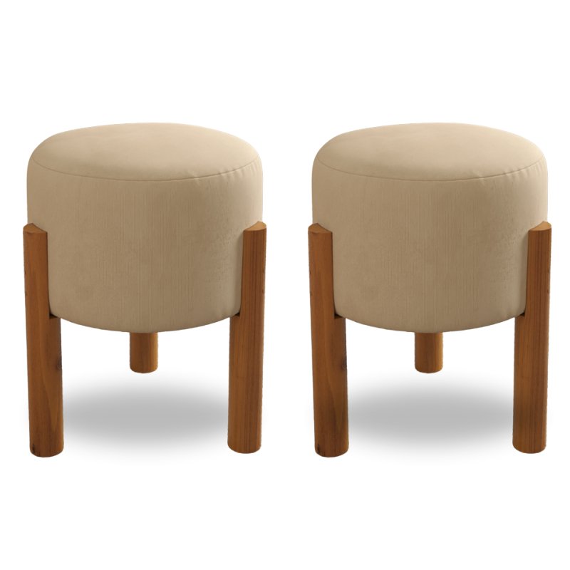 Kit 2 Puff Estofado Redondo com Pés em Madeira Banqueta Elegante