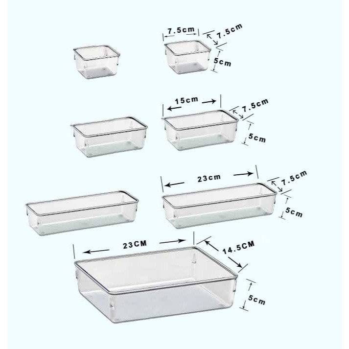 Conjunto 7 Organizadores Multiuso para Gavetas, Armários, Geladeiras Potes em Acrílico